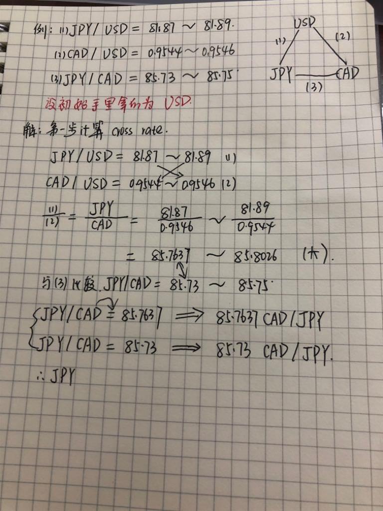 老师,三角套汇这个个知识点,利用1、2,算出JPY/CAD=85.7637。3中=85.73。怎么理解JPY更便宜?
