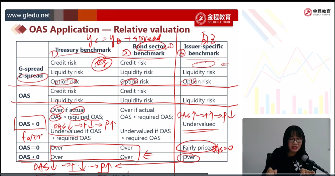 case 3第5题,仍然没有明白,为什么在计算有效久期时;第一种做法,在利率基础上加OAS,然后统一向上或者向下调整,分别计算价格后求得有效久期;第二种做法,先统一向上或者向下调整基础利率,然后加上OAS,分别求得价格后得到有效久期;我感觉前者更合理啊包含了对于OAS的调整;后者分开来做没有考虑对于OAS;能否通俗地再解释下,谢谢。