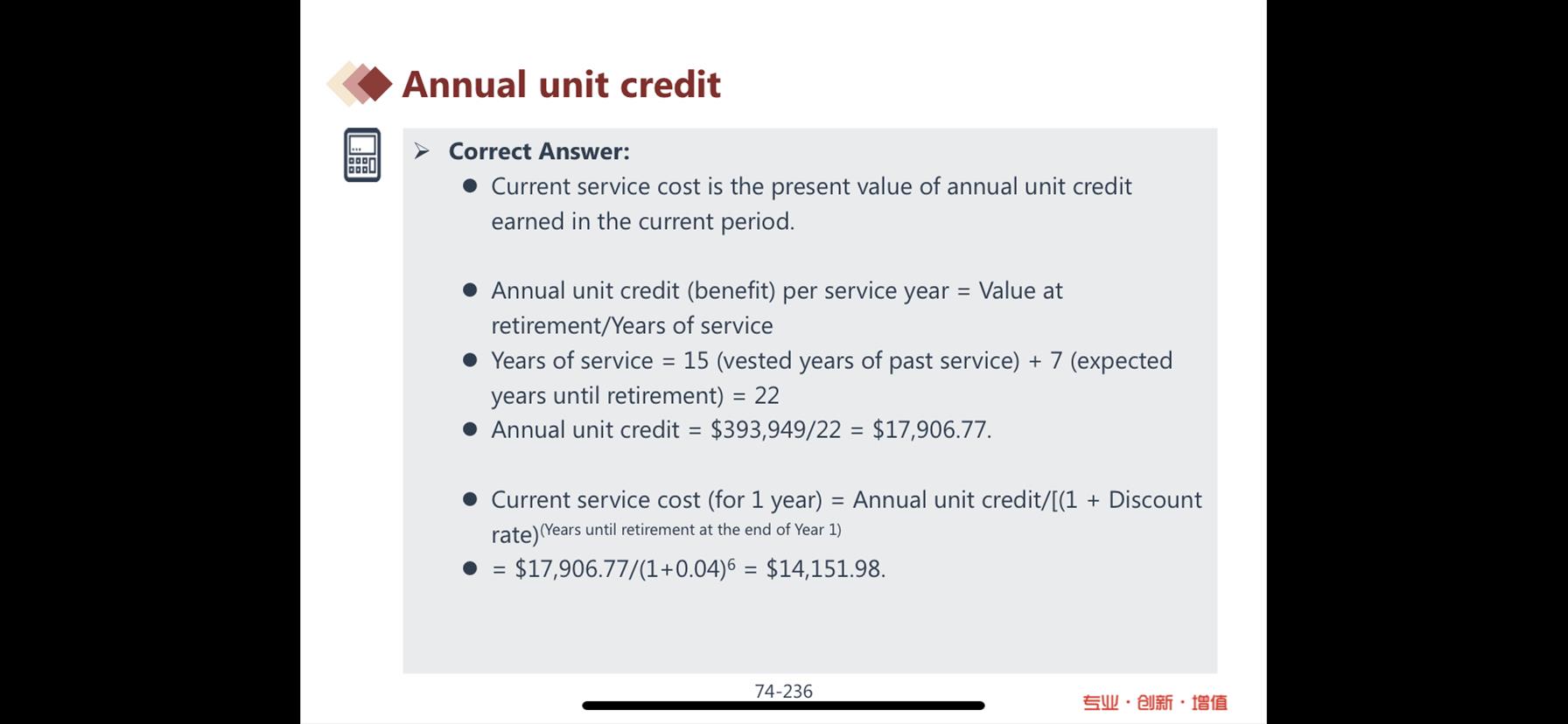 对最后一问CSC的计算和annual unit credit的概念不理解,请老师解释下
