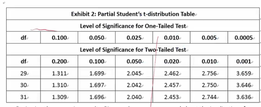 请问这个表格是双尾的值吧?可是为什么上面alpha的值还用的是α而不是α/2,就那个2.045在正常t分布表中应该是0.025的列
