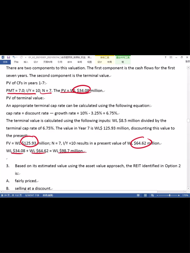 第一题第2问,题中给了第8年以后的增长率,为什么不用8.5*(1+3.25%)/cap rate 求出terminal 8 再折现