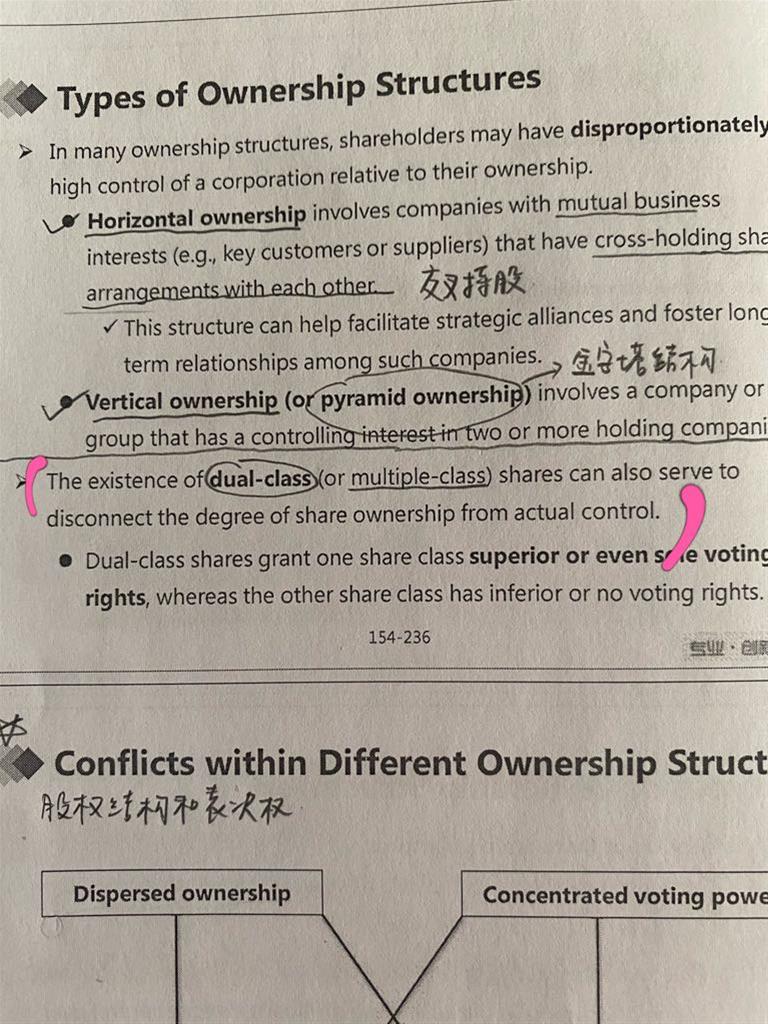 老师好,兼并收购这章粉色括号里这句话是什么意思啊? 为什么due-class会disconnect the degree of share ownership from actual control?