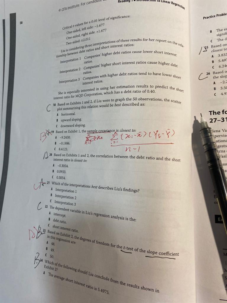 老师好,第21题,解释1和解释3,表述有什么差别吗?辛苦老师解释下。第23题什么意思?t检验,斜率系数是什么意思?