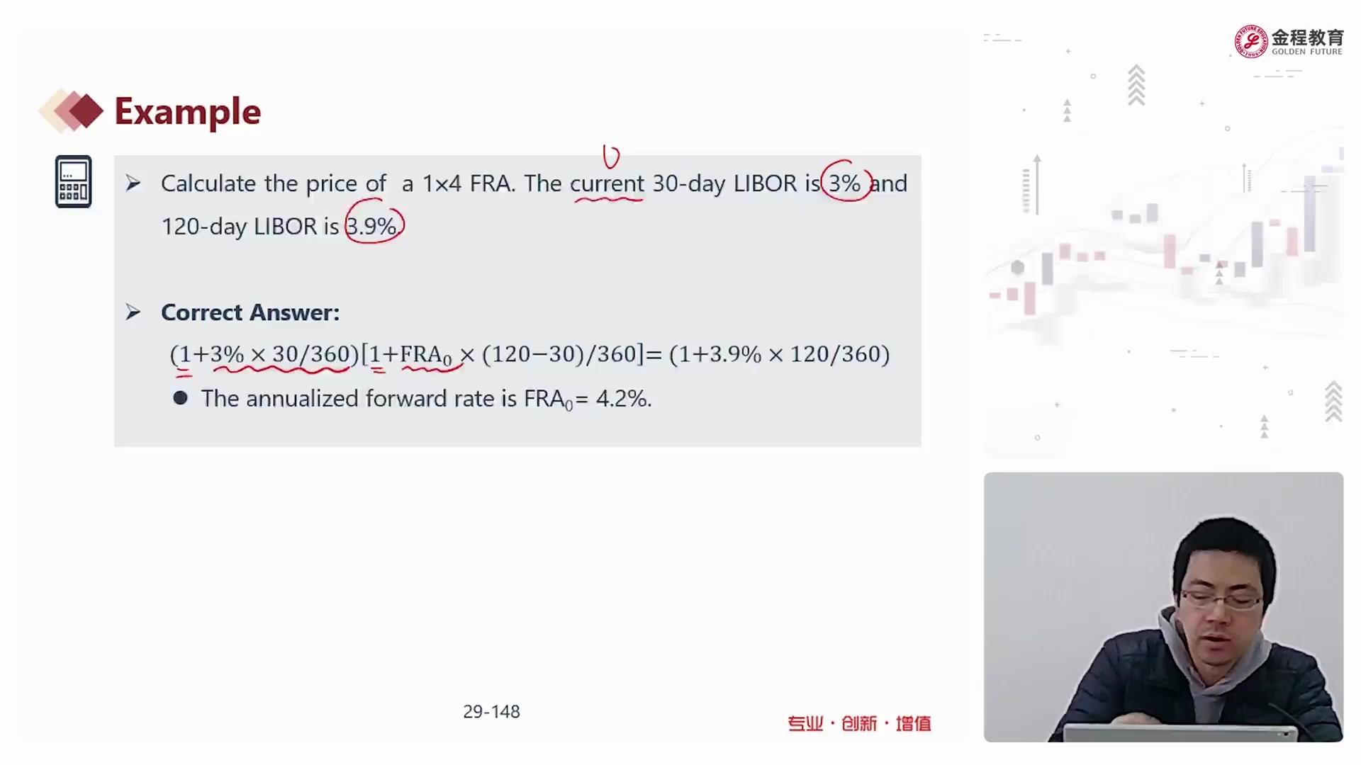 这道题的折现率和t=30时90天libor不一样,公式里用的都是floating rate at settlement.Why?