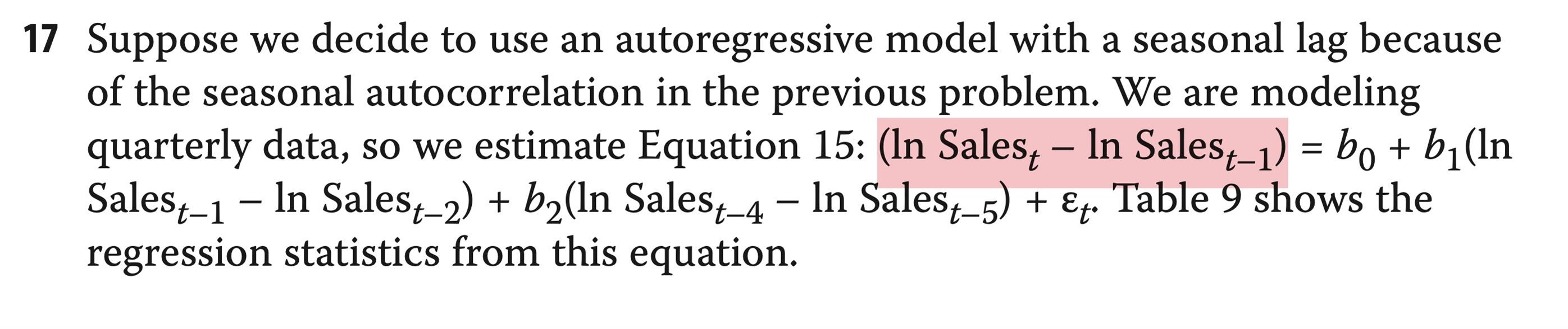 已回答1.上个问题打错了,想问为什么问correctly specified就是看有没有序列自相关?n2.还是17题,B选项为什么答案是ln(1.01)和ln(1.02)?还有图一我标红的那部分什么意思啊?不理解,麻烦老师详细讲下