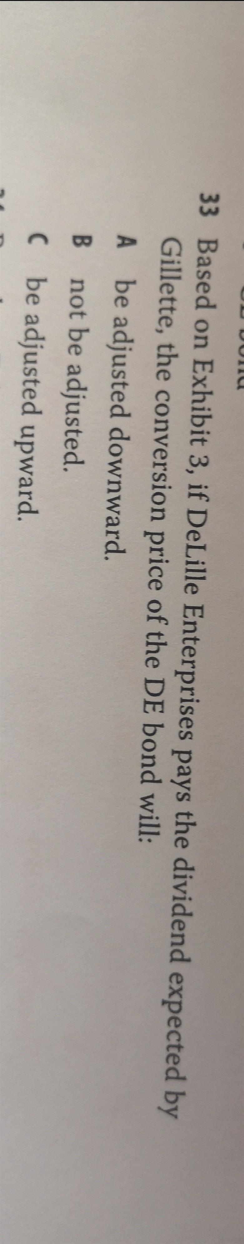 老师请问R34的33题,股票发股利,不是股票价格下降吗?conversion price等于Bond发行价÷conversion ratio,我不明白为什么股票价格的下降怎么会影响bond发行价啊?