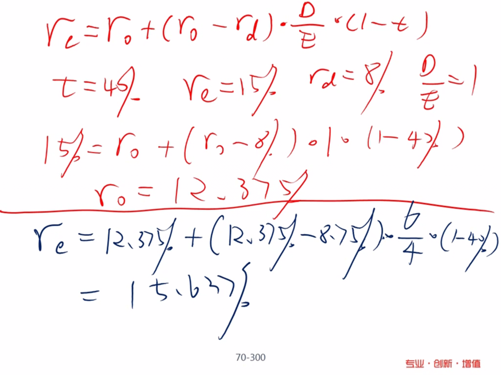 老师 百题case8的第四题我没懂为什么我们要求 r0, r0 不是在100% equity financed 时候 = rwacc 吗?可是题目中一直都不是 100% equity financed 的呀