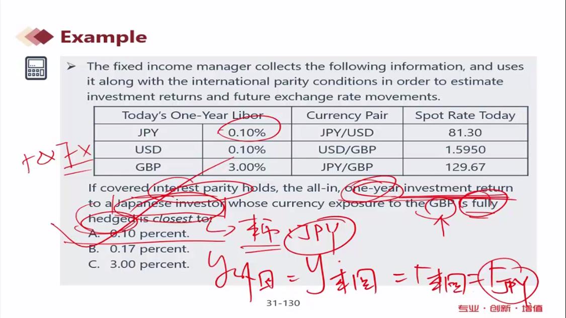 老师您好,这里老师提到的“外国收益=本国收益=本国利率=日元利率”这里我理解了,但是突然想到那如果这样的话,我们之前还那么辛苦的计算套利profit干嘛呢,就直接每次找到本币利率然后乘以size就OK了嘛,感觉看到这里反而之前的有点不理解了😓请老师帮忙解释一下,谢谢了!