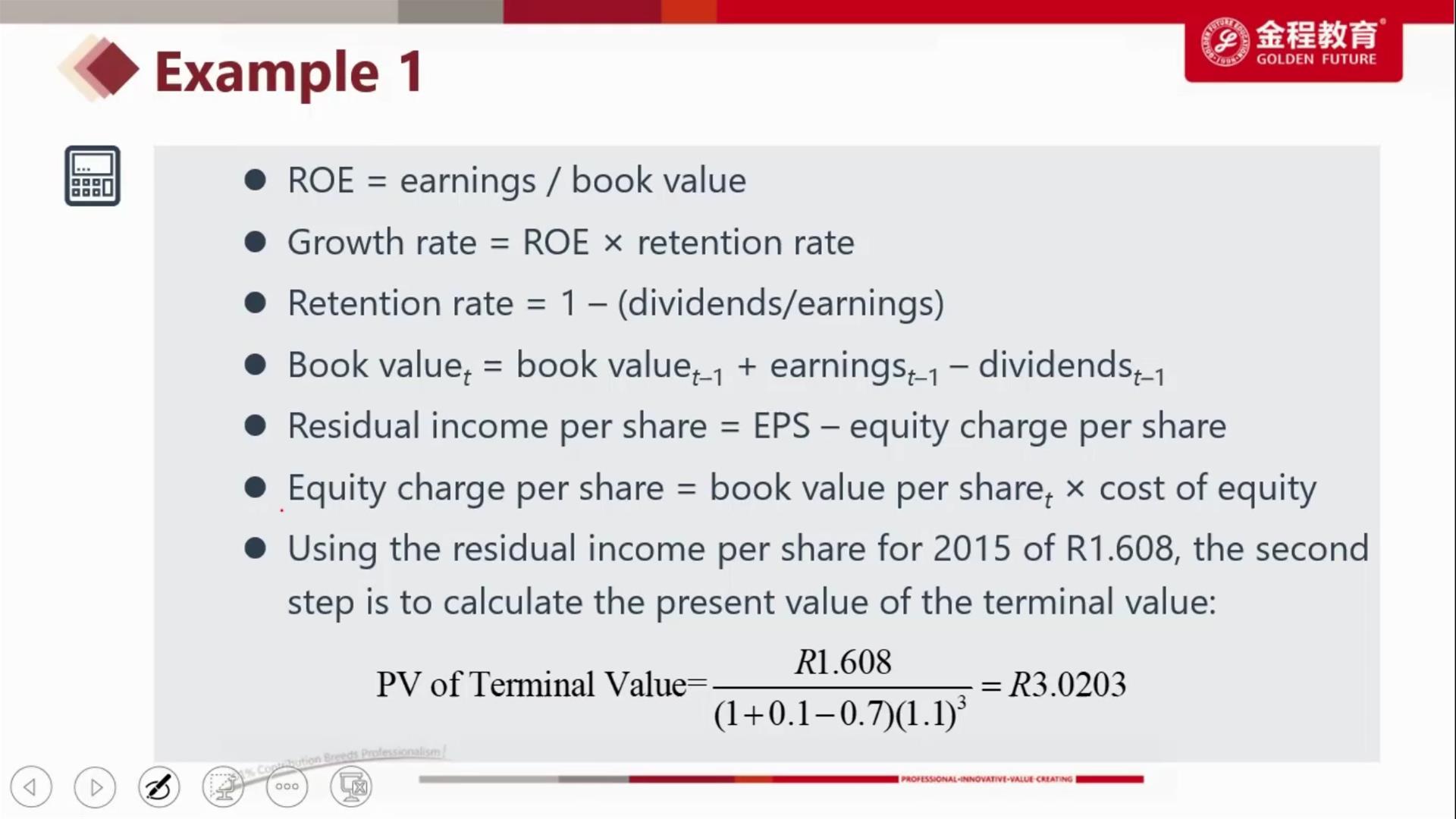 你好原版书后题第258页第24题,这里老师讲的和答案上写的不同,老师说两阶段,第一阶段就包括了2015年当年,还有TERMINAL2015折现4年,而 答案却只有折三年,也没有第一阶段2015的剩余收益去折四年,