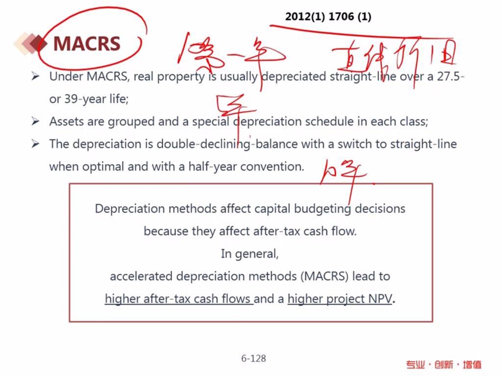 不好意思老师 MACRS这个点我完全混在一起了,老师说:MACRS 折旧有可能是和S&L一样的,具体要看表,可是讲义下方结论又说 MACRS lead to higher after tax CF。那么问题一:如果是一个 statement 判断对错,说的就是讲义上的这句结论,他究竟是对还是错呢?问题二:老师又说,MACRS 和 S&L 的第一年折旧有可能完全一样,这又是什么意思?为什么呢?