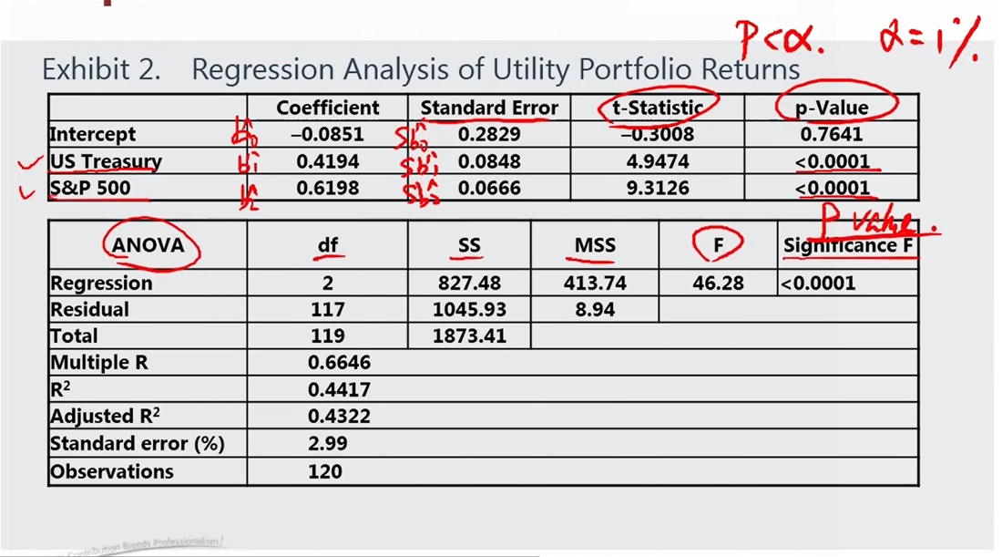 请问ANOVA中两个independent variable的p-value以及t test是对x的系数做检验还是x?
