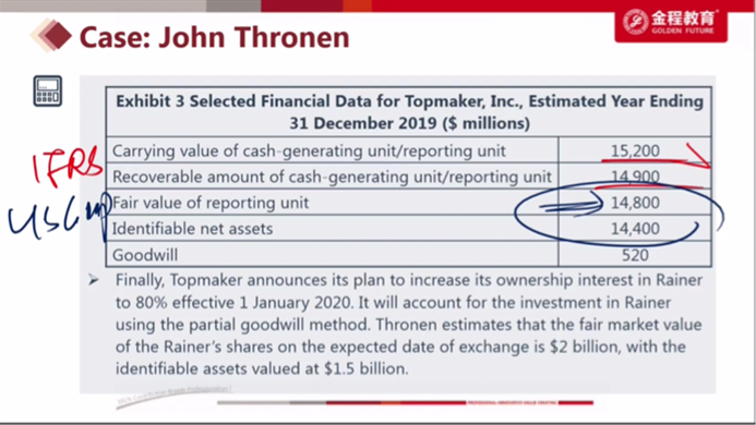 USGAAP下表里的FVof reporting unit咋理解?是收购对价的意思么?impliedGW算法就是算partialGW算法 这俩是一个意思么?谢谢