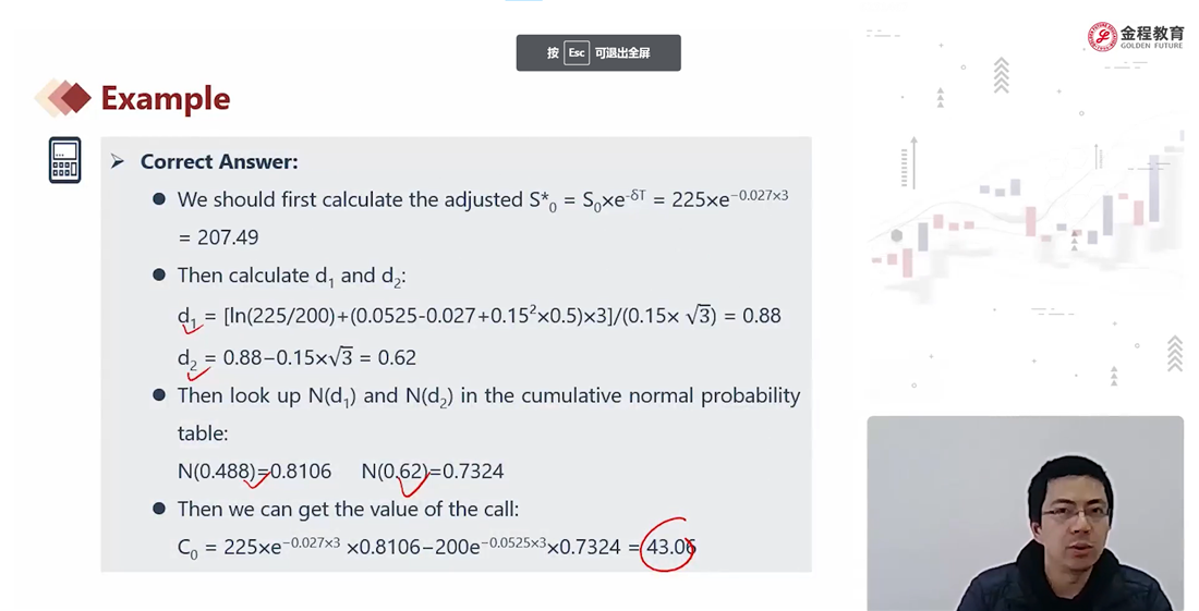 请问这道题d1是不是算错了?这ln里面应该不是225把?应该是207.49?