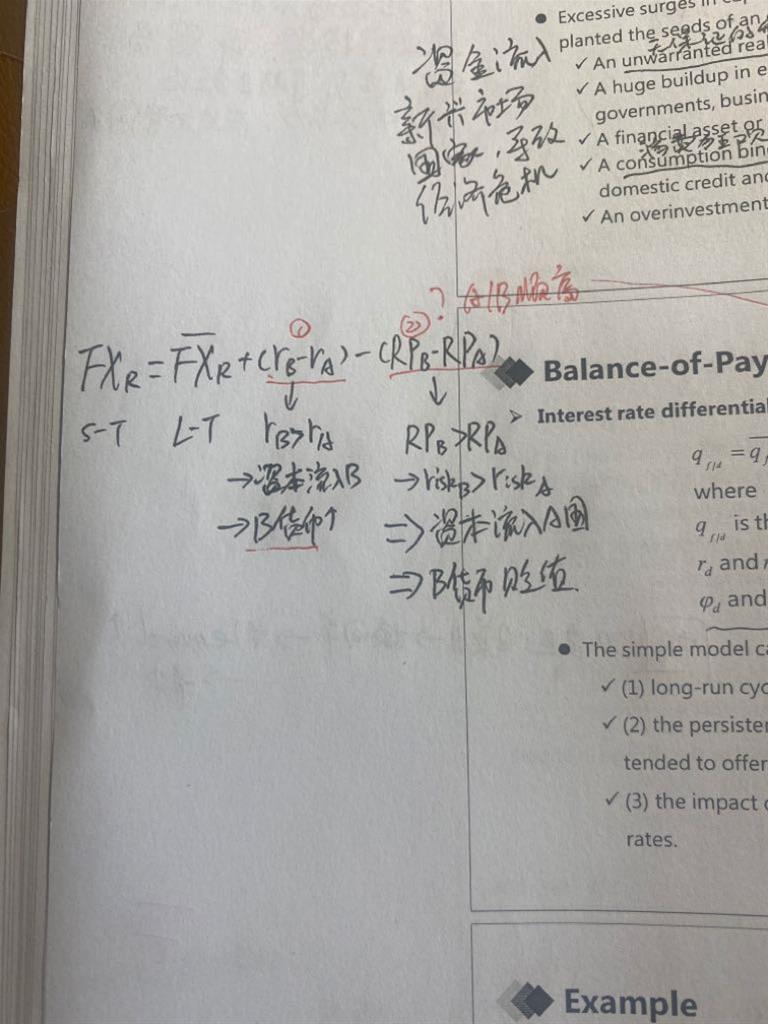 老师好,麻烦问一下,我标的圆圈1和圆圈2部分,同样都是a国利率小于b国利率,但是一个考虑b国利率高,一个考虑b国风险高呢
