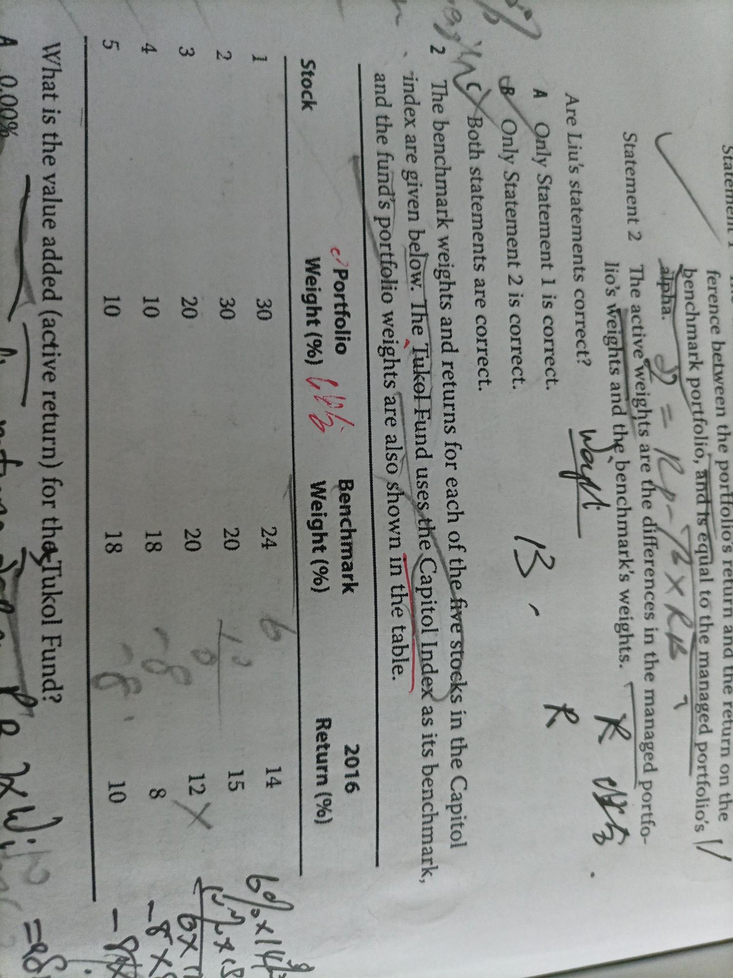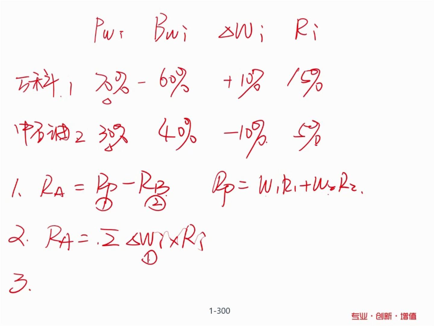 你好,这里是强化课程单老师,我记得前面学积极主动管理,相比BENCHMARK,我们做了很多题目 都有各自的权重配比,以及各自的收益,而这里BENCHAMRK也是和你积极主动管理的股票一样,所以收益也是一样,只是配比的权重不同,那之前那个情况有BENCHMARK的收益属于什么样情形,也是积极主动管理吧,见原版书后题,如第7题,既有权重不同也有BENCHARM自己的回报,而第2题,却只有不同权重,我一些混淆。
