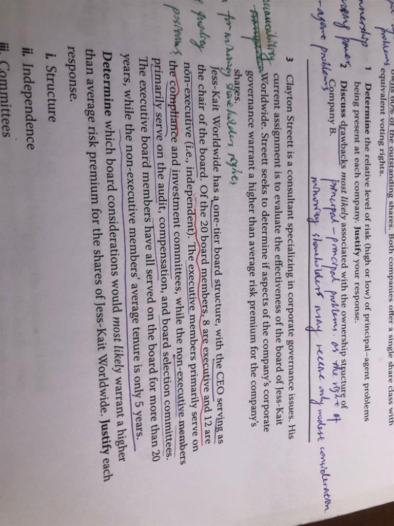 Reading22课后题第3题中关于股权结构对董事会对性的影响。题目20个董事会成员中8个是行政的,12个是非行政的独立的。上课老师不是讲独立董事至少要占75%以上吗?这里独立董事才60%,也算对独立性没有影响吗,没有higher risk premium?