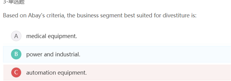 题目只是说了Power and Industrial 的EBIT/sale是5%最小,但有可能是他的基础销售额很大,因而其EBIT其实也是很大的,这种情况下Power and Industria的单位资本回报并不一定是三者最小的啊,按照解析里直接根据EBIT/sale 和部门资本所占比例来判断我觉得有点不准确