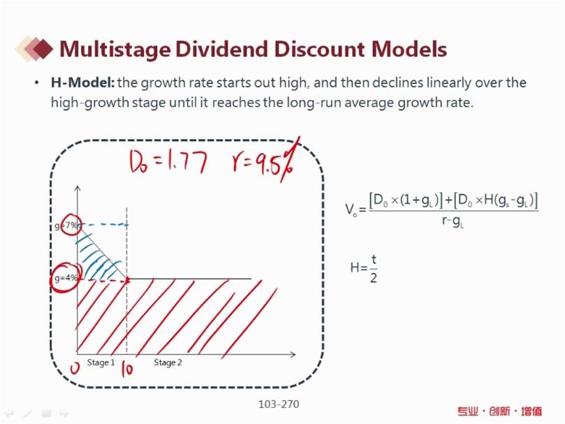 老师,这种题型能不能将第一阶段视为以5.5%增长?因为第一阶段是均匀下降,取两个增速评论,转化为两阶段模型,可否这样思考?