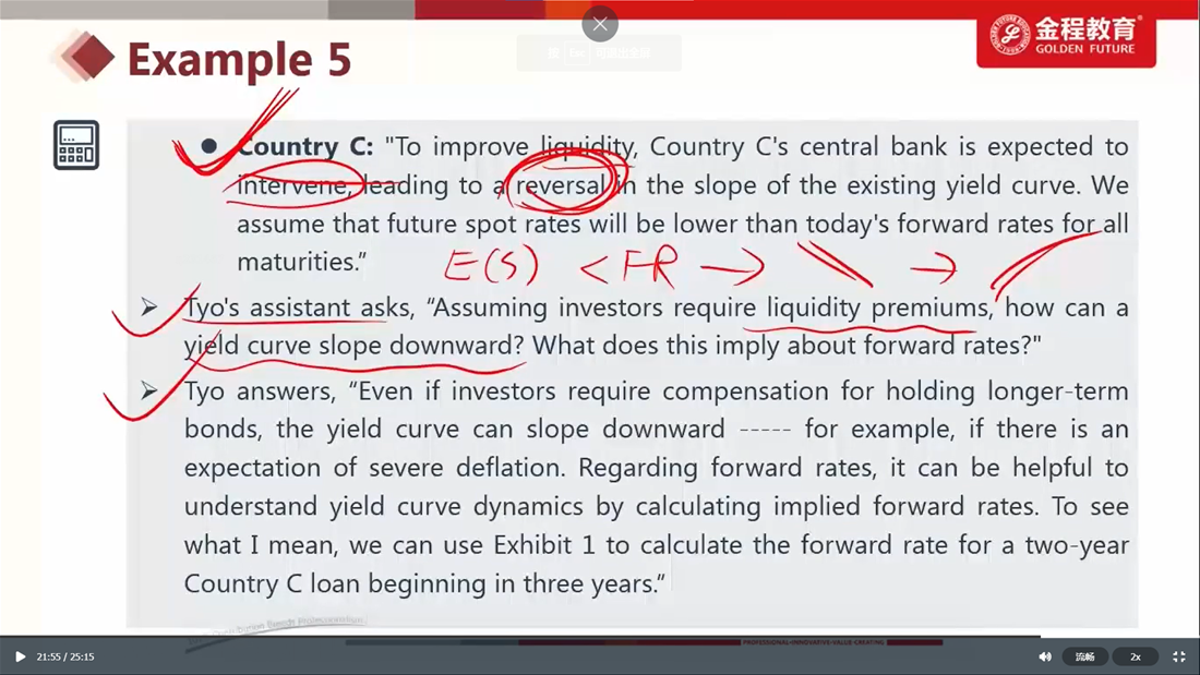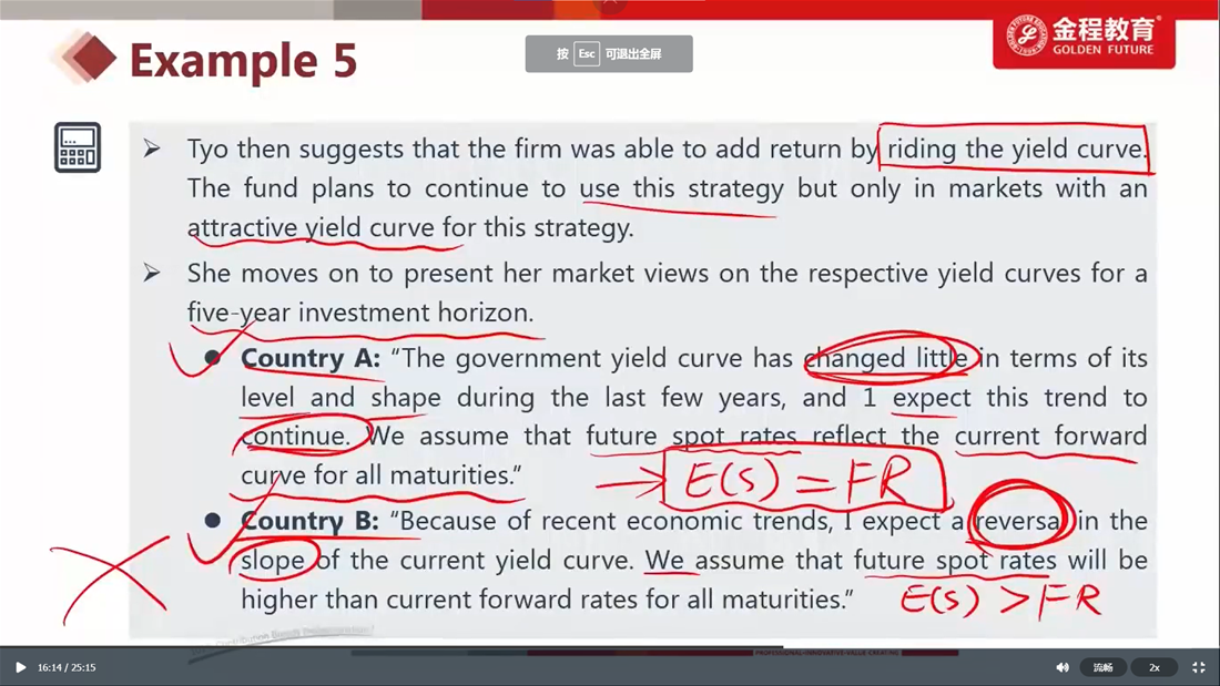 请问这道题题干说出E(S)和F的关系有什么用吗? 同时对于country A,如果E(S)=forward rate,有什么含义吗?我知道的是如果S<F,那么才会到导致upward,如果等于,应该是flat