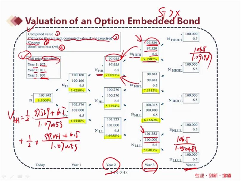 老师,最后一期二叉树对应的那一年,为什么还要用箭头区分上下?最后一年本金到期,直接向前折现一期不就行了吗?