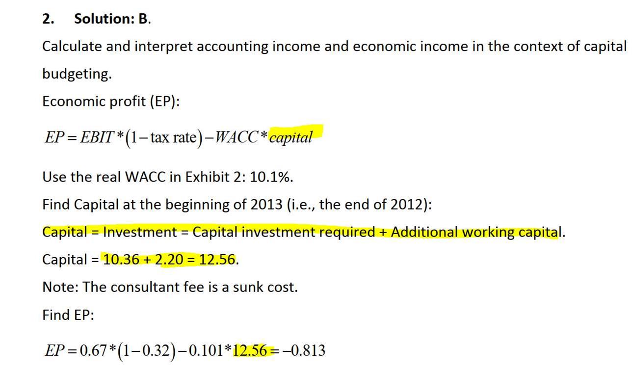 老师好, 百题case 5, 第2题。1) 为啥这里不能直接用capital investment required of 10.36? 2) capital investment required和FCinv一样吗? 3) 如果给的是FCinv ,WC 求economic profit 里的Capital是否是WC +FCinv,对吗? 是否capital 永远是 FCinv 或题中给的catpial investment required + WC? 谢谢。