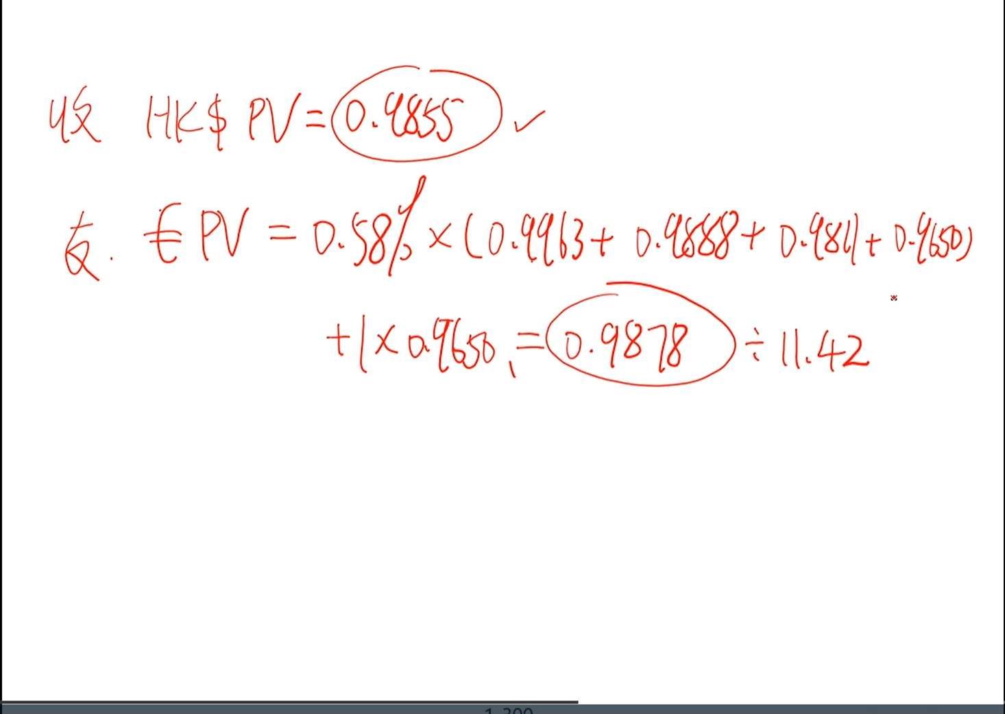 HK11.42 per euro,那这里0.9878的欧元换成港币不是应该乘以11.42吗