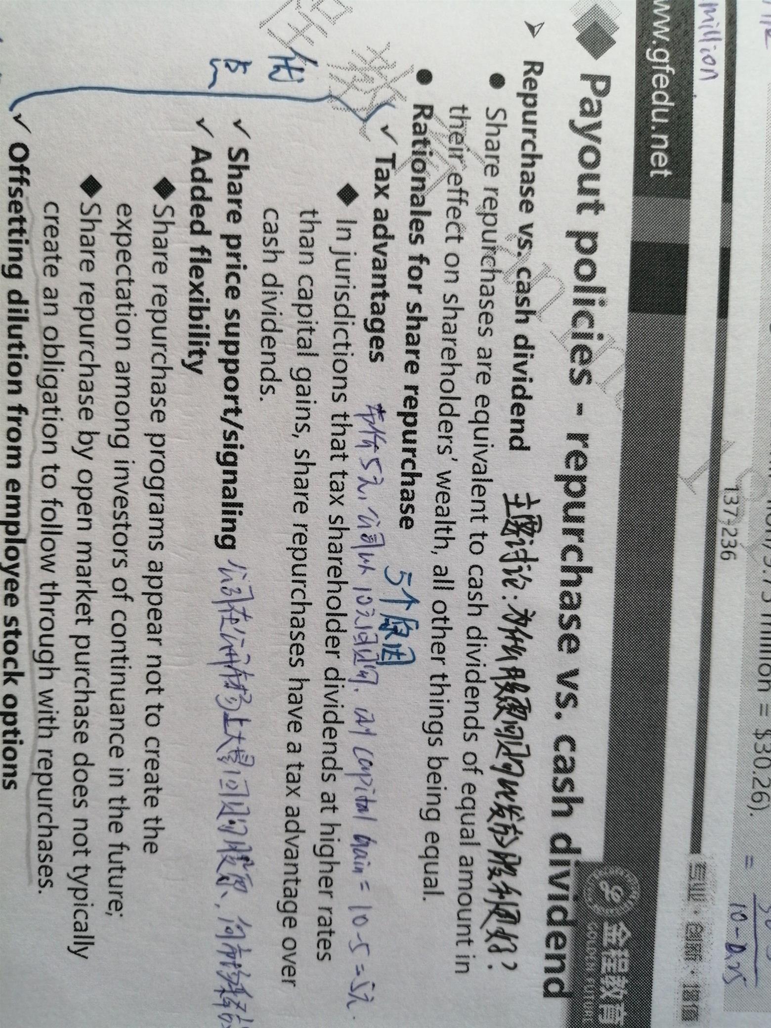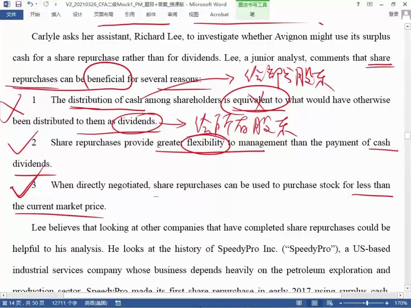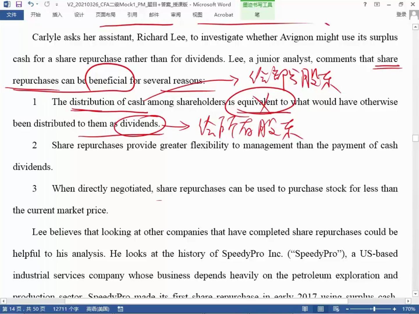 Mock1 PM 第19题,关于statement 1,很奇怪,我们不总是说股票回购和现金股利是一样的吗?这里又说不一样