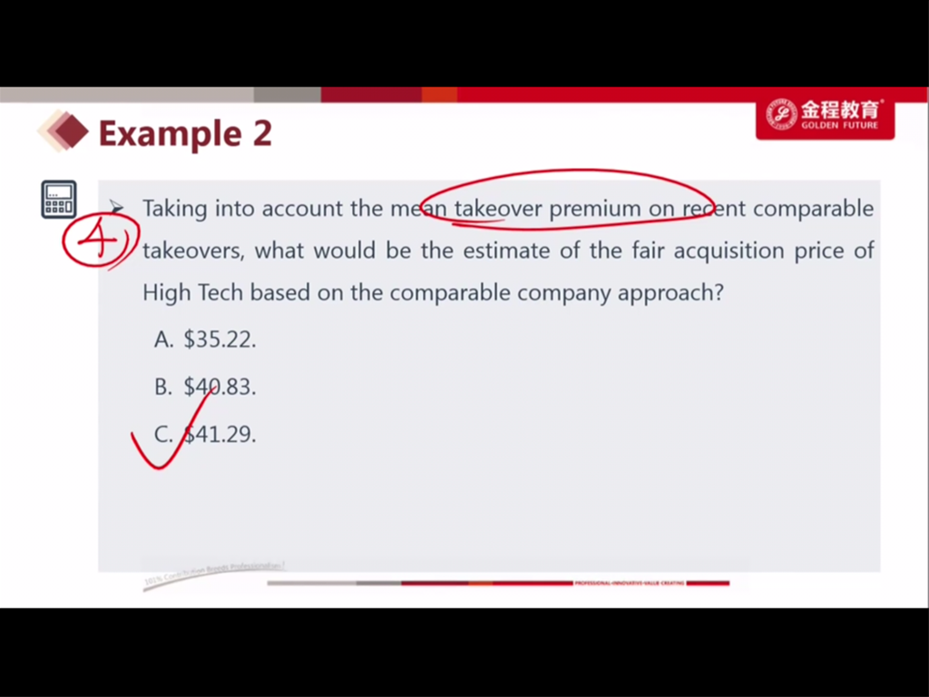 第二个图不是可比交易法么不应该考虑溢价啊 本来就是控股的价格了啊 第一个图是可比公司法 应该考虑溢价吧 因为可比的股价都是少数股东的担M&A是控股的 为啥这道题和上课讲的正好相反?