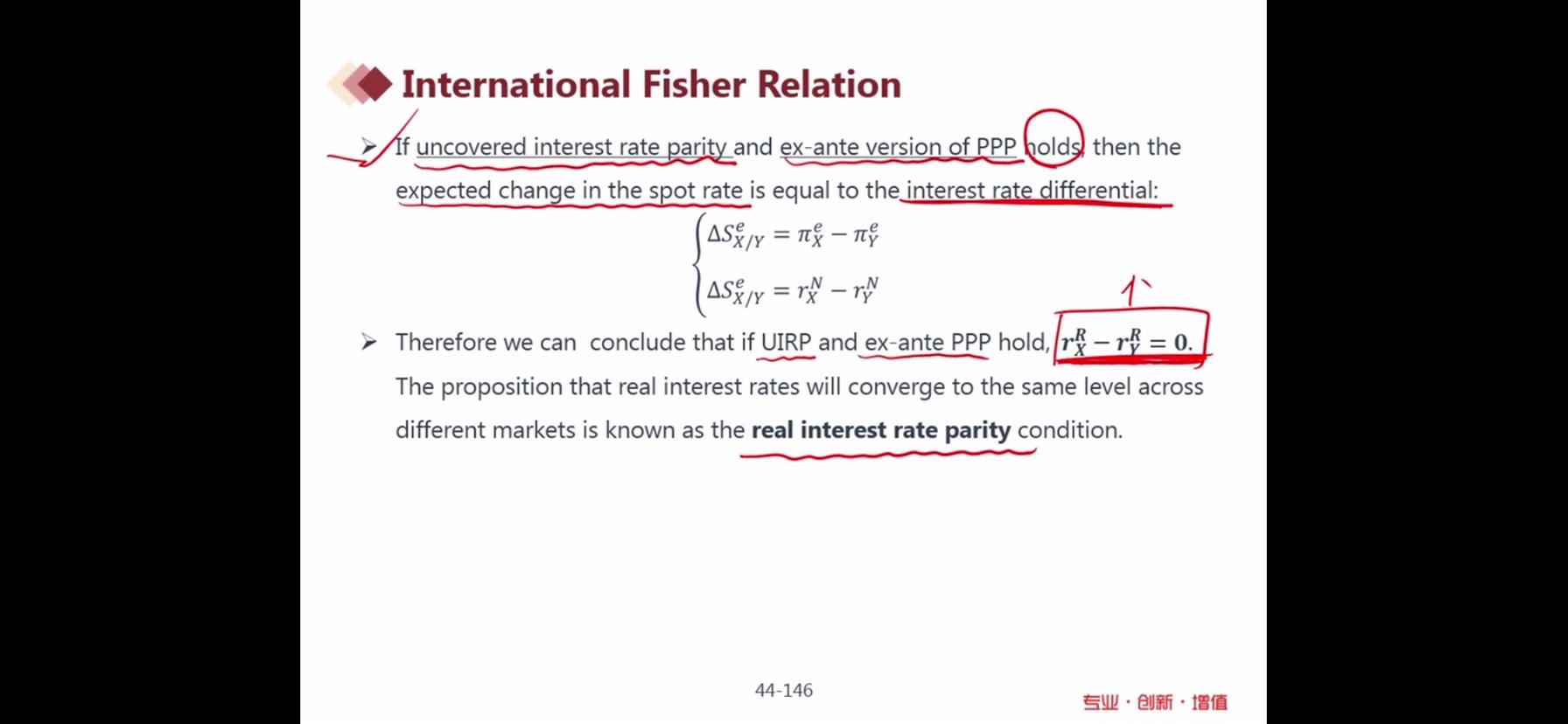 老师你好,这里为什么要UIRP和PPP成立,两国真实利率之差才为0?即使不成立,之差也为0吧。 我们在推导1/2那个式子时,不就假设的是两国长期真实利率一样吗?