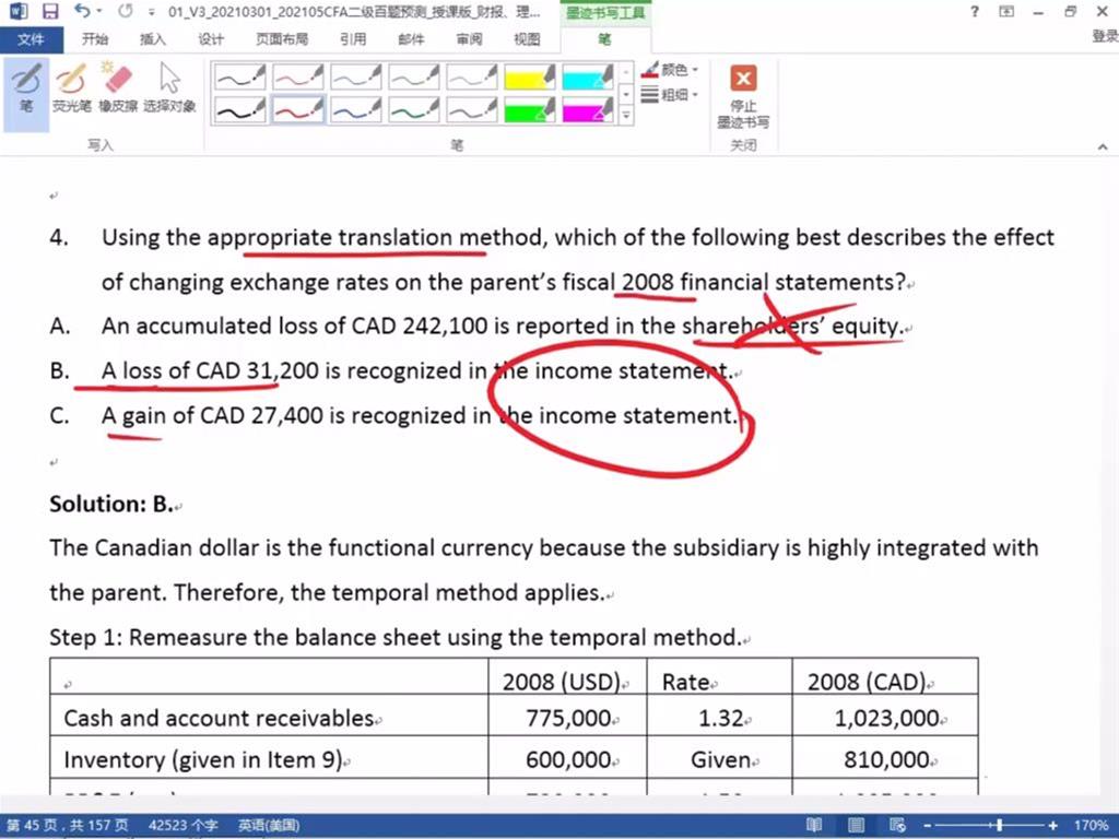 老师 这个问题我不知道考试会不会考,但我很好奇也想不明白,这题的子公司的销售收入是要并进来的,由于外币贬值导致了并进来的销售收入少了,从这个点看对母公司不是好事,但母公司货币升值,从这个点看对母公司又是好事,所以当外币贬值,对母公司究竟是好还是不好呢?
