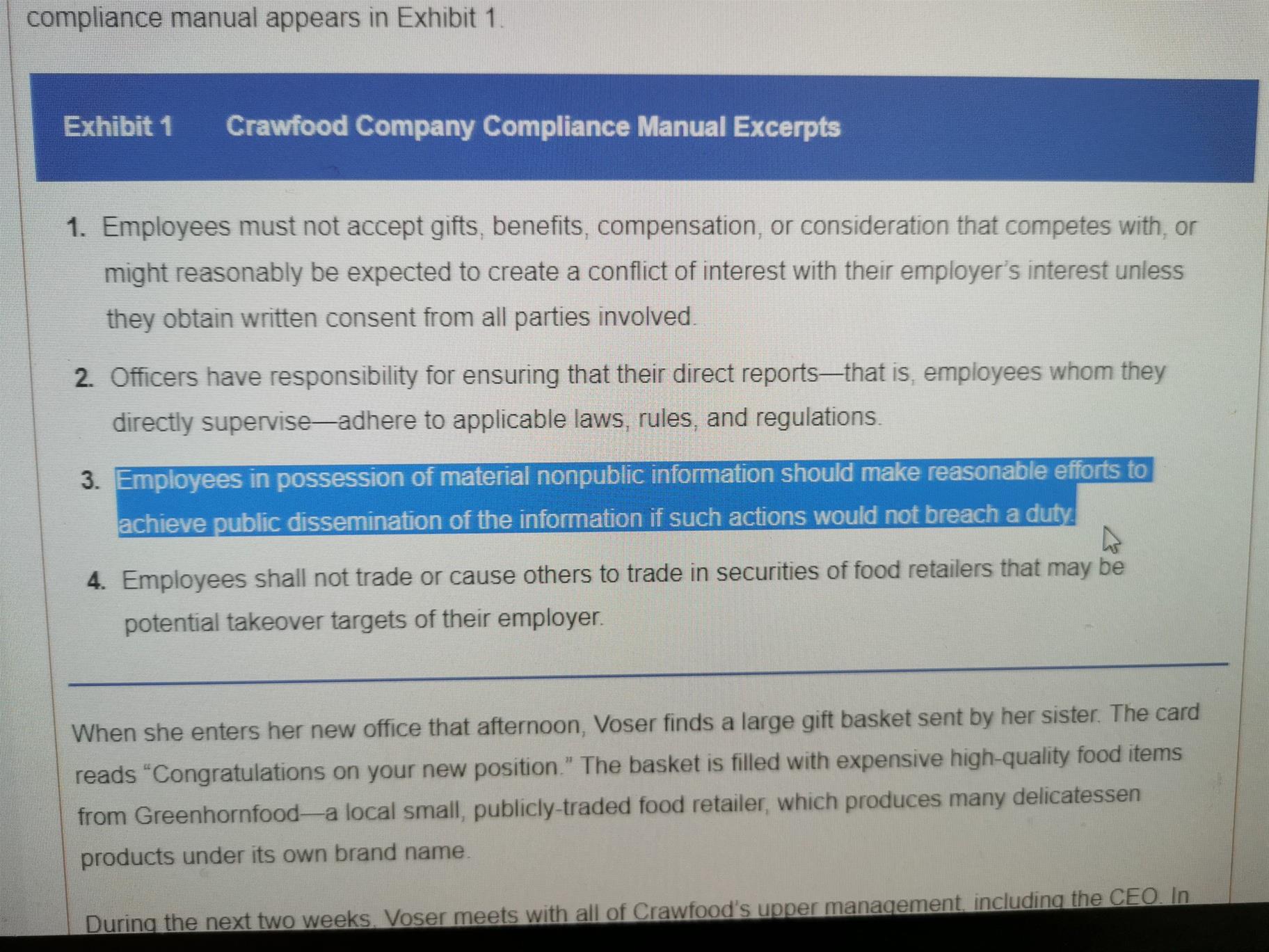 这个图二 题干 我没读懂 到底公司规章有没有要求保密避免泄露 if not breach duty意思是?