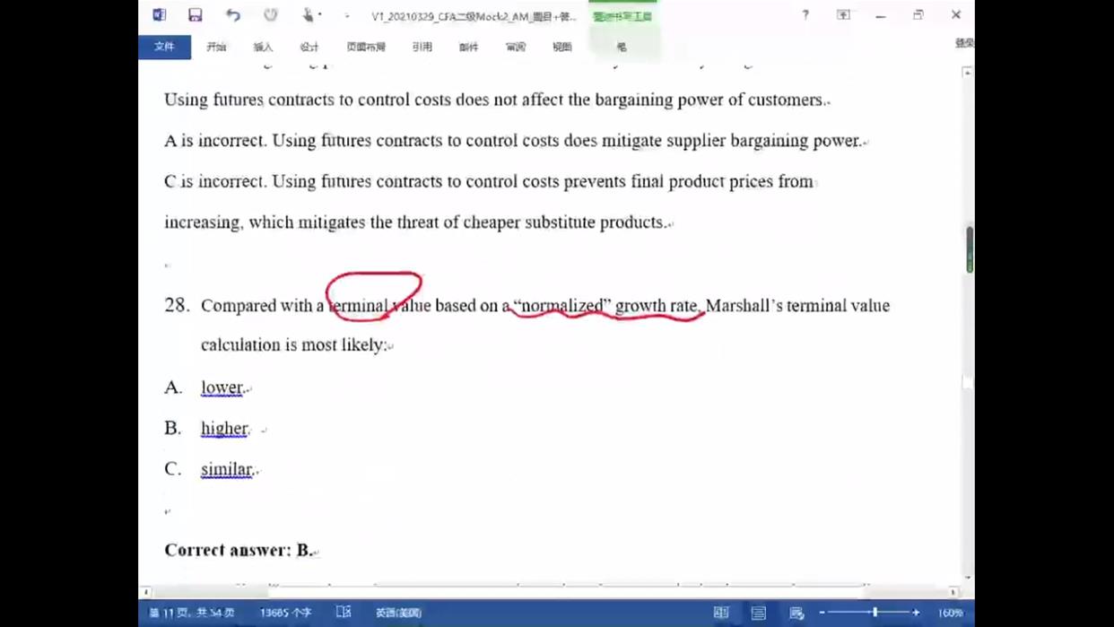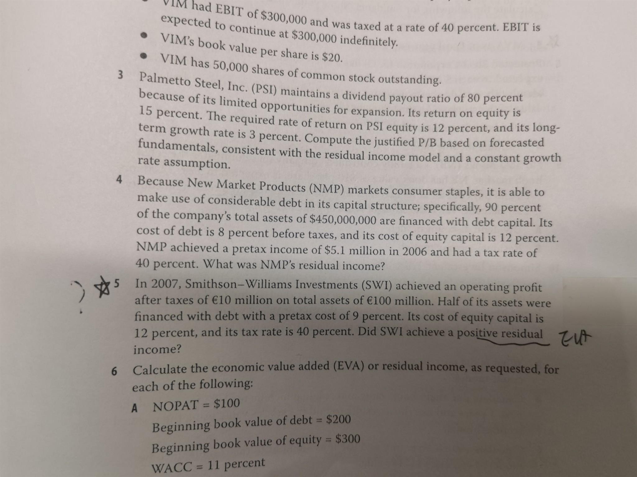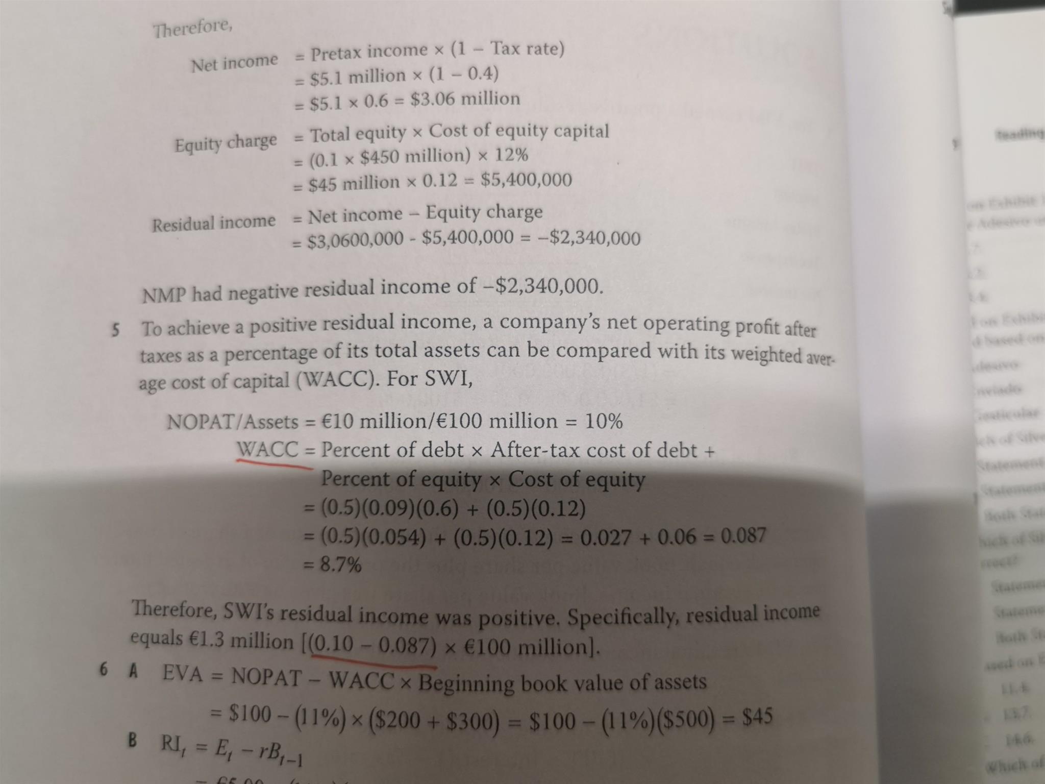 第五题的答案似乎是经济利润,不是剩余利润? 我的过程是从10推送税前,税前减掉利息,然后再扣税,再减掉EQUITY成本,大概1.4左右,请问老师那个正确?