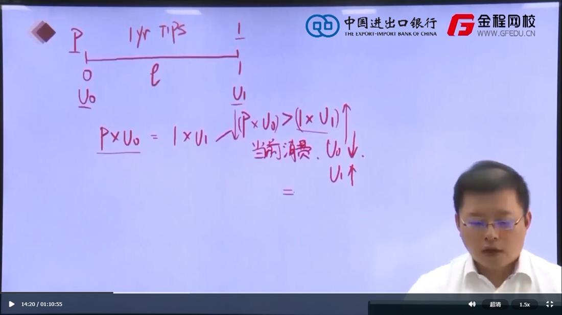 投资市场和经济学视频第14分钟,PxU0>1xU1时,当前消费P↑ U0↓,未来消费1↓ U1↑,两边分别的变化是不确定的,无法得出式子两端会左降右升,从而趋近于相等呀,谢谢老师