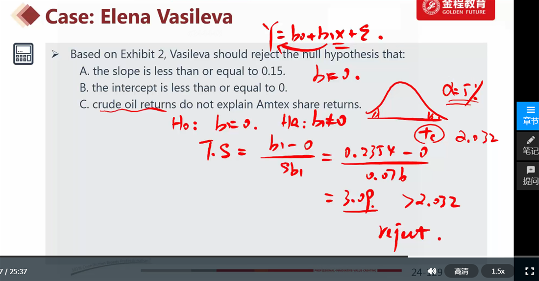 拒绝原假设的话不就说明b1≠0,不就是可以解释了吗?为什么C选项还说不能解释?