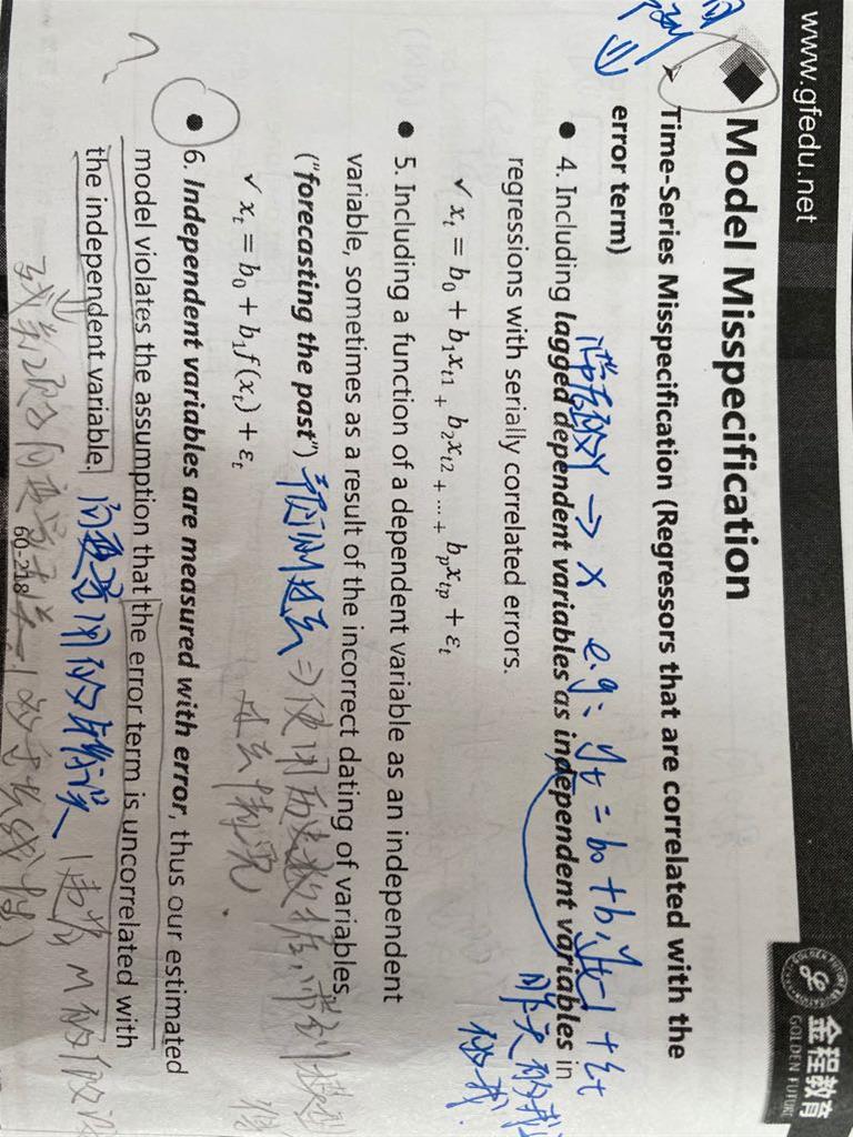 图一,这一张内容该如何理解?我理解的是时间序列分析是Misspecification 形式之一,不就是一种自相关的表现么?但是图二 画圈那句话说时间序列数据如果去展现了自相关特征,意味着该model不适合时间序列~那按我的理解两句话就是矛盾的,麻烦您给我讲一下~