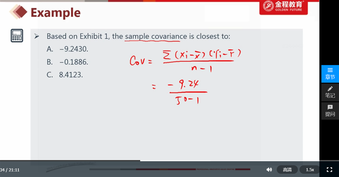 分母上的这个Cov(X,Y)和sample covariance有什么区别呢?我混一起了所以选了A