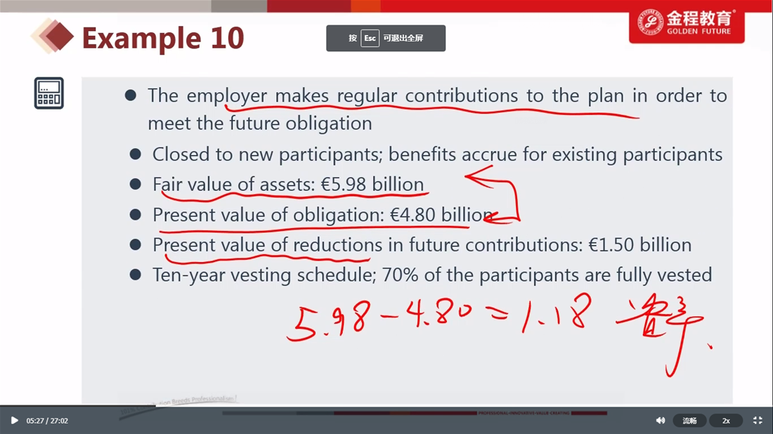 请教下,图片中的 present value of reductions in future contributions 指的是什么意思?老师说可以看成是pension asset 的ceiling,该如何理解?