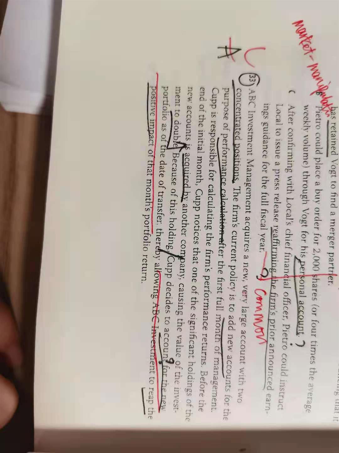 道德书P182第33题,请问题目中红线划的account for the new portfolio是什么意思?为何选C
