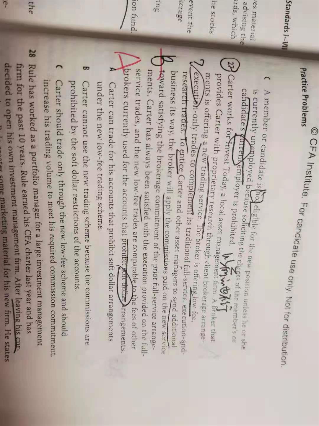 道德原版书P181第27题,题目和解答都看不懂。请问什么是execution-only trade?从题目第6行the broker will apply...起后面都不太能理解了,谢谢