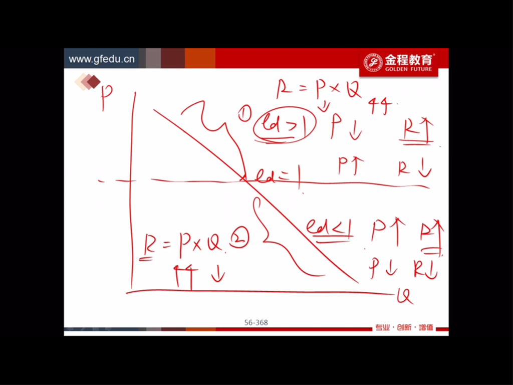 在弹性大于1的点为什么p下降,revune会上升,为什么