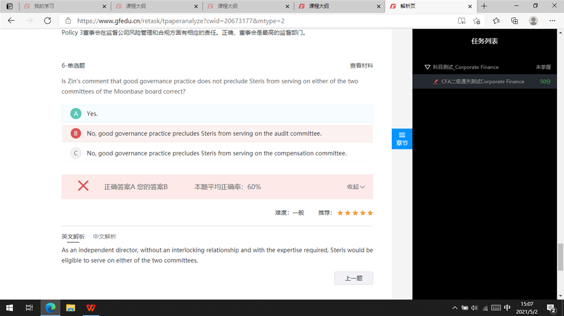 包含CFA二级传统在线课程、通关课程及试题相关提问答疑;