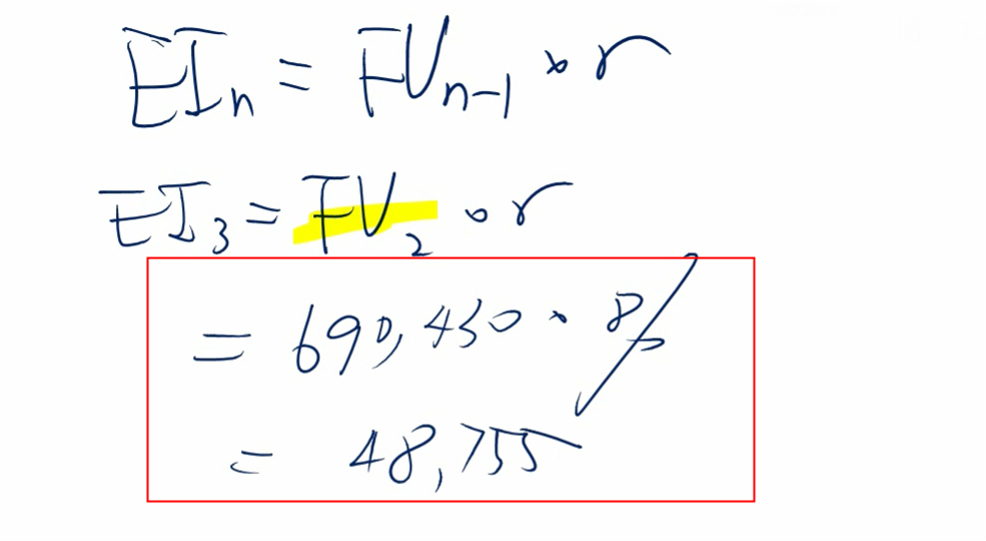 (刚才是case2不是case1)百题公司金融case2 第5题,视频里老师说EI3=FV2*r,但是给的数字如截图根本是错的,乘出来是55234。请问是哪里不对呢?