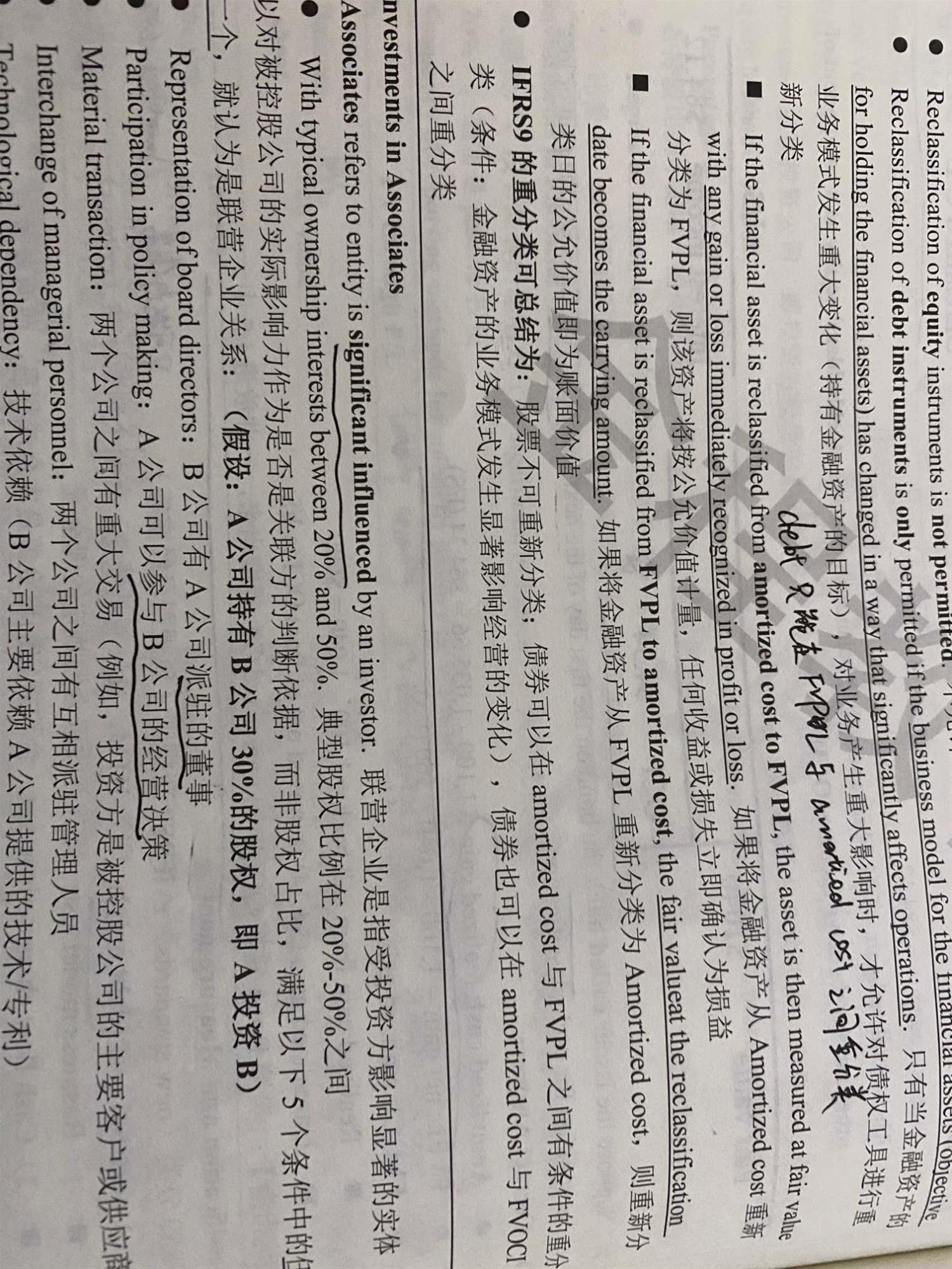 老师,我想明确一下金融资产的重分类,因为我听课上老师说debt只能在FVPL和amortized cost之间重分类吗,但冲刺笔记上这里说到也可以在FVOCI和amortized cost之间重分类