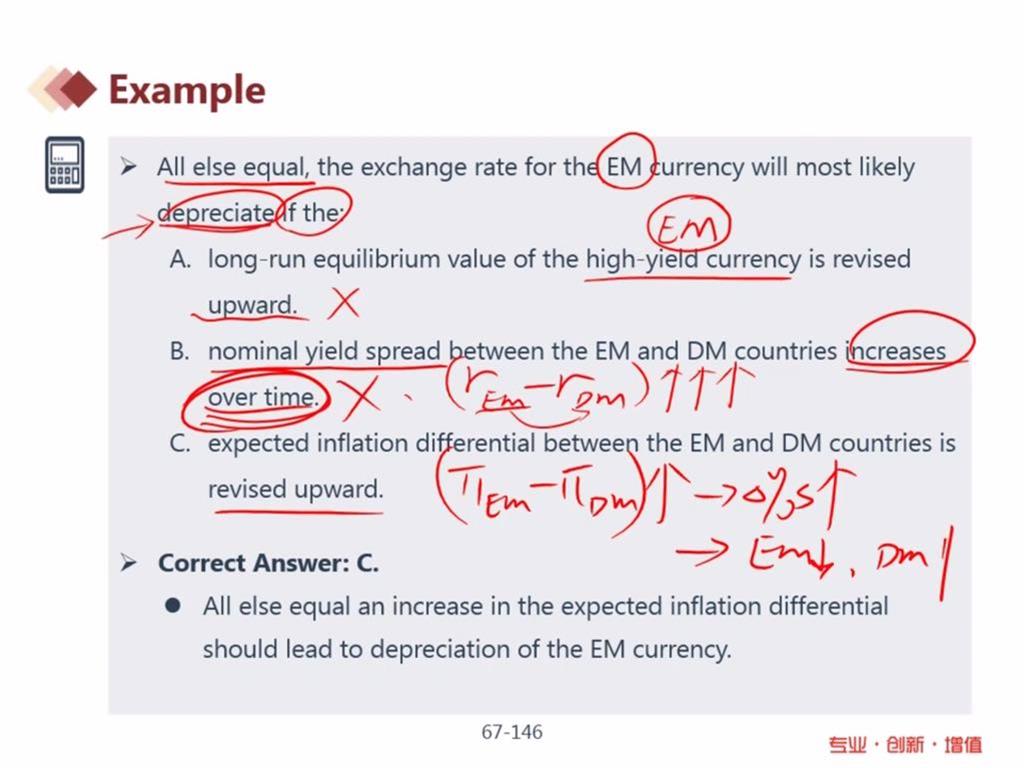 - 老师,第三题答案的意思是:1.因为宽松的货币政策,导致加元利率下跌,导致加元贬值?2.但是,如果利率下跌,也就是分母上的百分比下降,不是会导致价格上升吗?。3.从而短期看是depreciation,但是长期来看,会回归到均值,所以是appreciation?