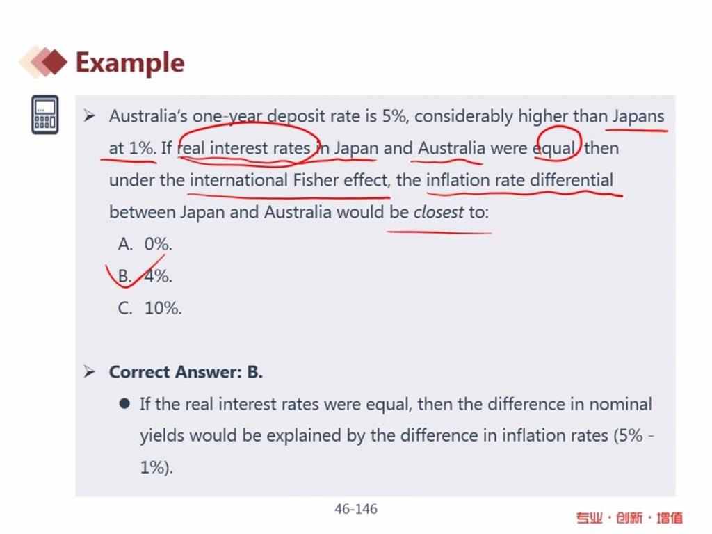 - 老师,第三题答案的意思是:1.因为宽松的货币政策,导致加元利率下跌,导致加元贬值?2.但是,如果利率下跌,也就是分母上的百分比下降,不是会导致价格上升吗?。3.从而短期看是depreciation,但是长期来看,会回归到均值,所以是appreciation?
