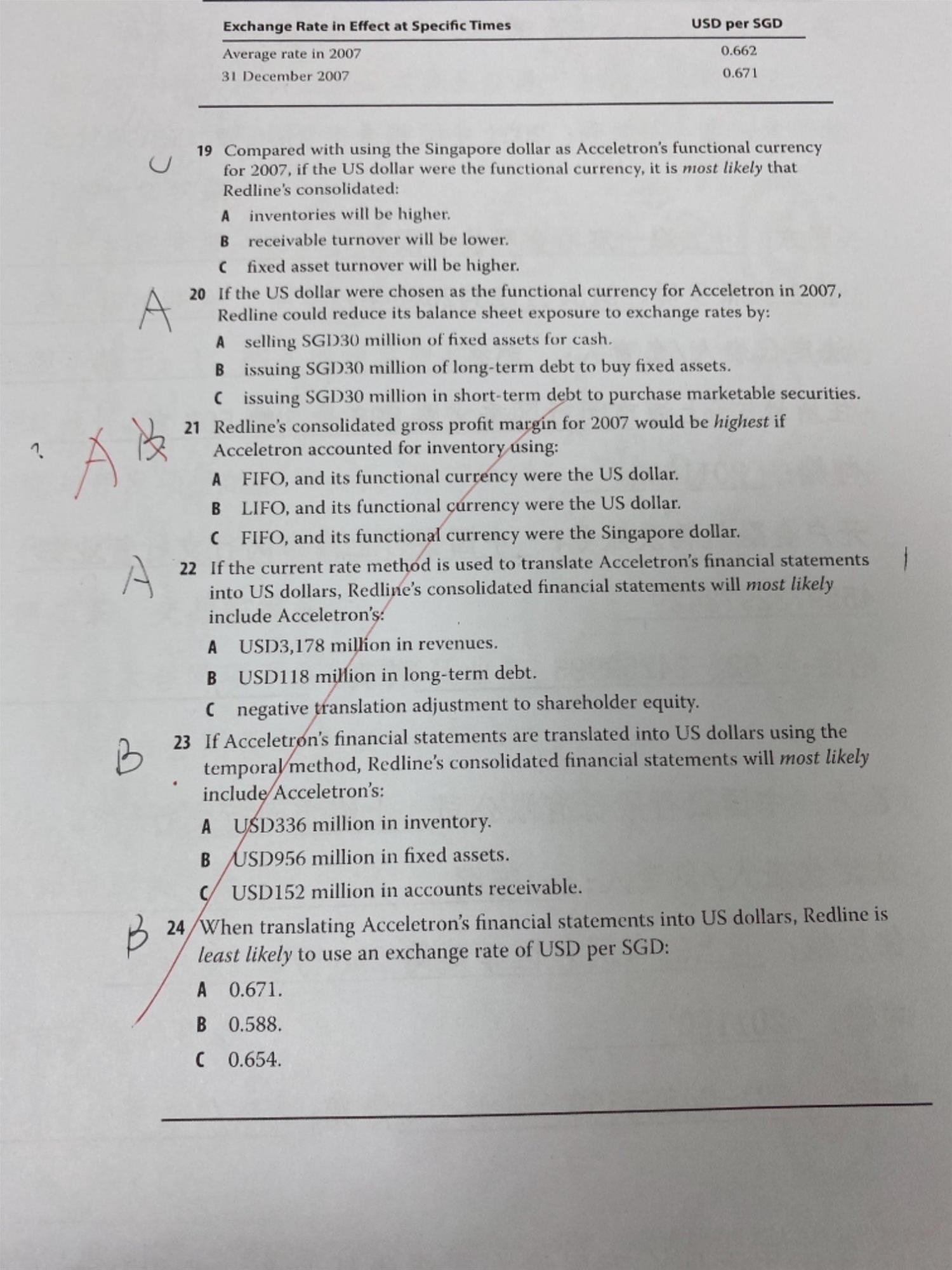 课后题21,题干描述是新加坡正面临温和的通胀,那我理解就是新币也是在贬值。那应该后进先出 折算成美元更少成本,为什么不选B