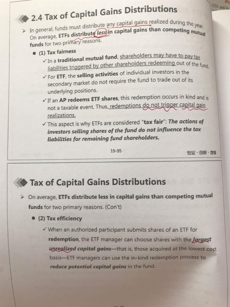 老师麻烦能解释一下reading43的第10题吗,A的ROCdistribution具体是什么,为什么教材里说etf 会distribute less呢,如果资本利得变现和交税少了的话,不是可以受益更好,有更多分红吗?