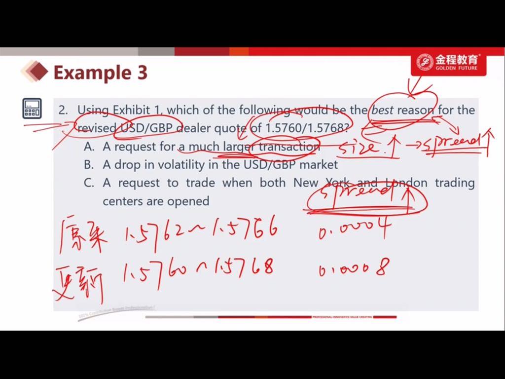 已回答老师 这题结合我上一个问题,其实我还是没理解这个知识点。虽然 size increase, spread increase 了,可是 USD and GBP 却是四大主要货币,spread 缩小,那这里为什么还是 spread increase 呢?是当 size 碰上四大货币, size dominants 吗?