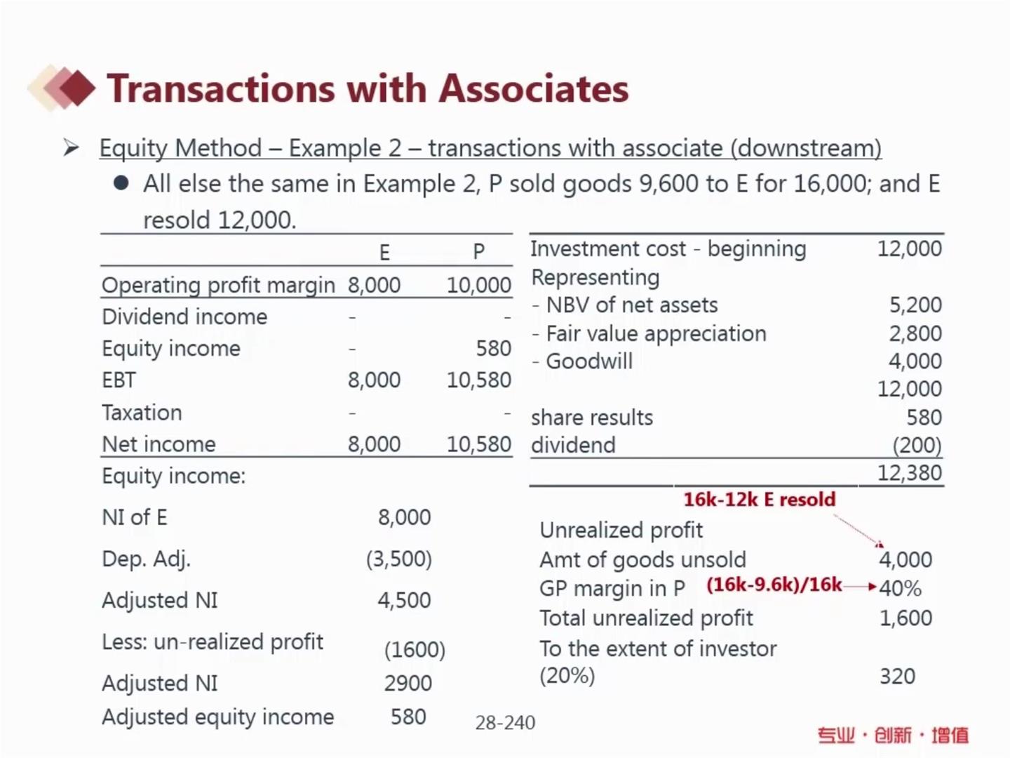 在downstream中,利润是在投资公司报表上体现为什么还需要按照股权比例计算。例如,投资公司A以100万,卖给被投公司B 200万,被投公司B(30%股权)未销售。那么应当是投资公司A未实现利润为100万,被投资公司其他股东没有任何未实现利润。(upstreamB销售给A,按照比例计算容易理解)谢谢。