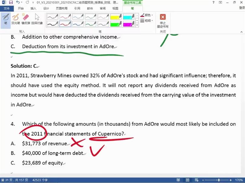 case1的第4题。合并报表的话,母公司的equity中不是应该加上少数股东权益部分,这题里50%的股权且equitybookvalue 和fairvalue相等,正好是23689